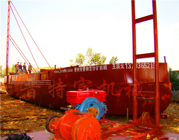 晉特富環保科技生產的抽砂選鐵船,適用范圍廣,維修費用低,是針對厚泥層抽沙選鐵的設備。1,產品結構:本設備有附體,主架,鉆桿,抽沙泵,高壓打水泵,控制箱,卷揚機,發電機組,磁選機,平板磁選機,發沖箱,尾礦輸送設備等組成。2,抽沙系統:抽沙泵8吋-16吋,打水泵6吋-14吋,動力配電機或柴油機,抽沙鉆桿,用鋼板工鋼焊接,強度大,鉆探深度3-100米,3,選礦設備:JTF-磁1530磁選機1-3臺,JTF-pb3040平板磁選一套,4,尾礦輸送設備:輸送帶,抽沙泵,二次挖斗,水洗輪,螺旋輸送機,溜槽,任選其一。