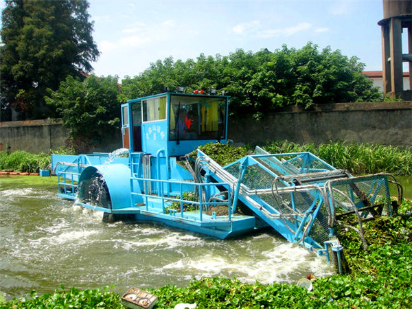 割草船,顧名思義就是一種適用于中小型湖泊、河道、人工湖等城市園林景區的現代化水草、水葫蘆收割、運輸設備。